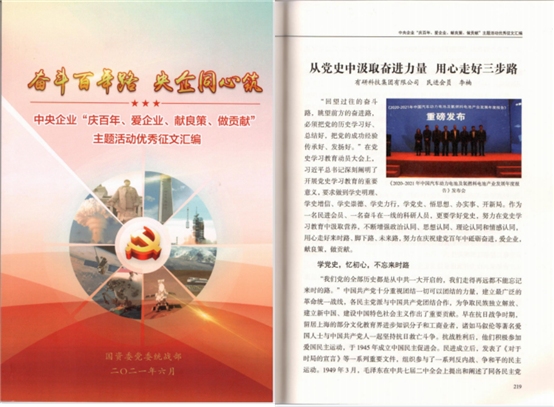 近日,國(guó)聯(lián)研究院民主黨派青年參加有研集團(tuán)組織企業(yè)統(tǒng)戰(zhàn)成員參加的國(guó)資委黨委統(tǒng)戰(zhàn)部“慶百年、愛企業(yè)、獻(xiàn)良策、做貢獻(xiàn)”主題活動(dòng),中國(guó)民主促進(jìn)會(huì)會(huì)員青年市場(chǎng)推廣部李楠以《從黨史中汲取奮進(jìn)力量 用心走好三步路》為題征文入選《奮斗百年路 央企同心筑——中央企業(yè)“慶百年、愛企業(yè)、獻(xiàn)良策、做貢獻(xiàn)”主題活動(dòng)優(yōu)秀征文匯編》,生動(dòng)紀(jì)錄統(tǒng)戰(zhàn)成員拼搏進(jìn)取的奮斗故事,充分展示了勇于奉獻(xiàn)的精神風(fēng)貌。